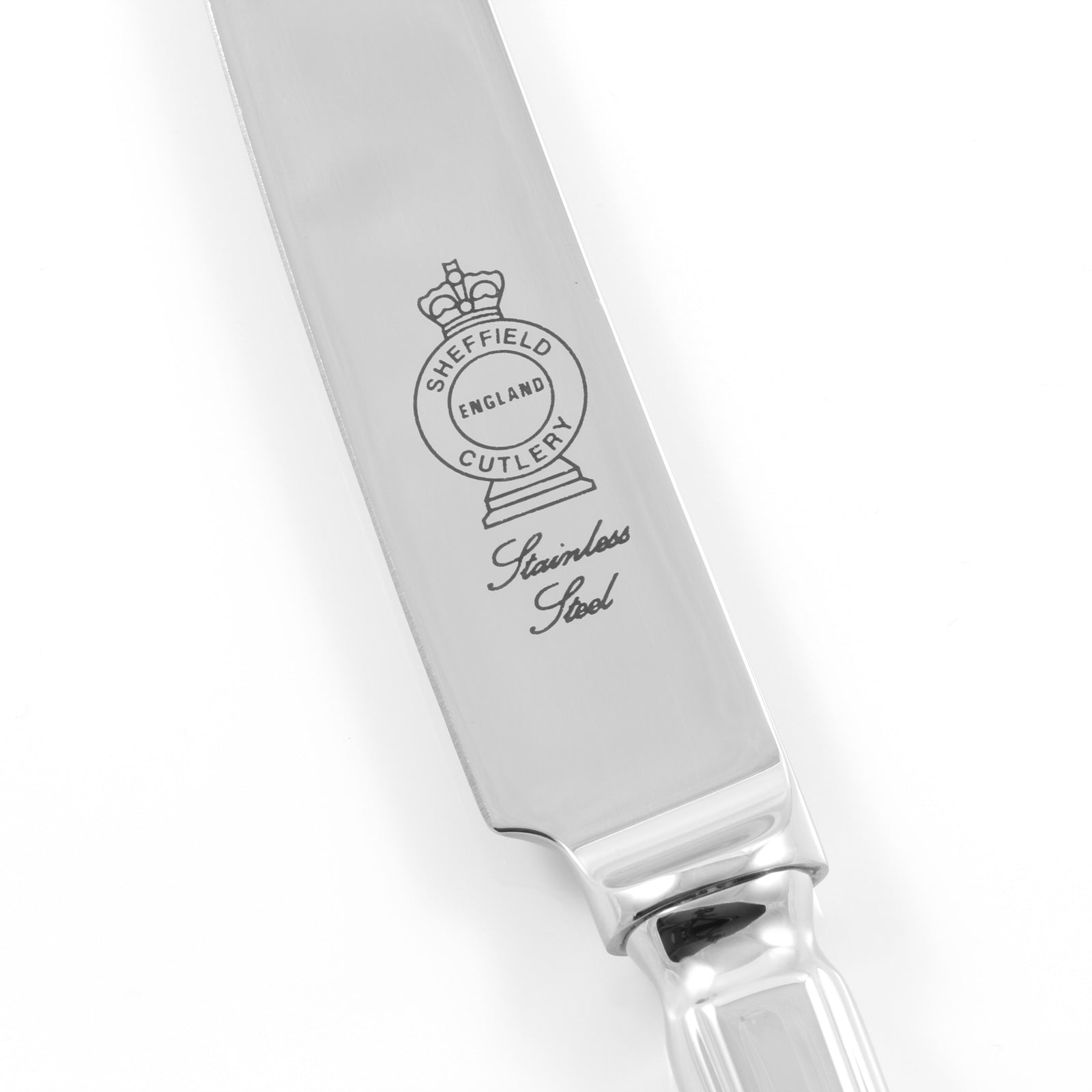 従来のものと比較して欠けなどが発生しずらい、高級ステンレスと呼ばれるシェフィールド産の18/10ステンレスのみを使用しています。また、刃の根本にはSheffield,England と描かれたロゴがあしらわれています。これはSheffieldで製造されたことの証です。