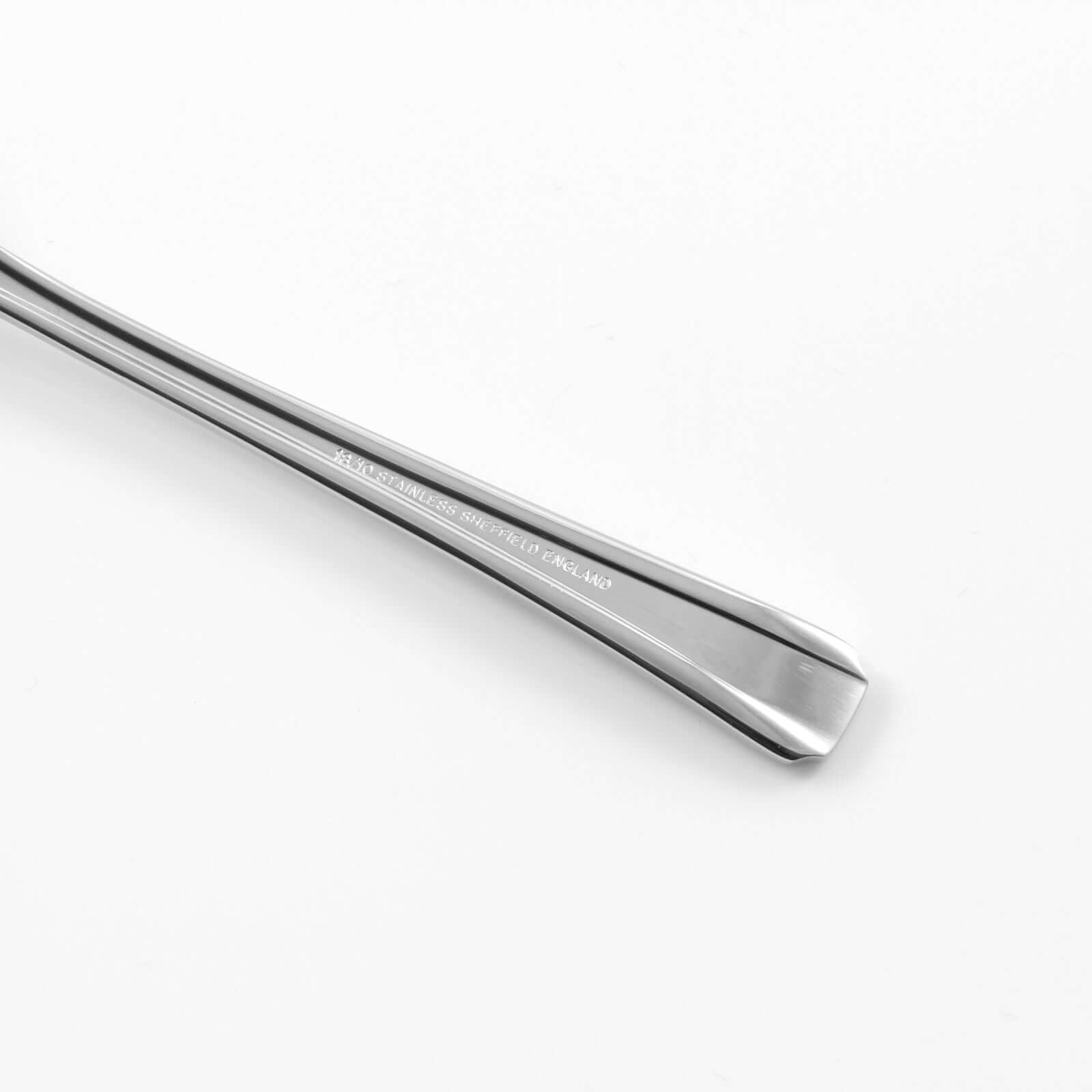 従来のものと比較して欠けなどが発生しずらい、高級ステンレスと呼ばれるシェフィールド産の18/10ステンレスのみを使用しています。また、裏側にはSheffield,England と描かれたロゴがあしらわれています。これはSheffieldで製造されたことの証です。