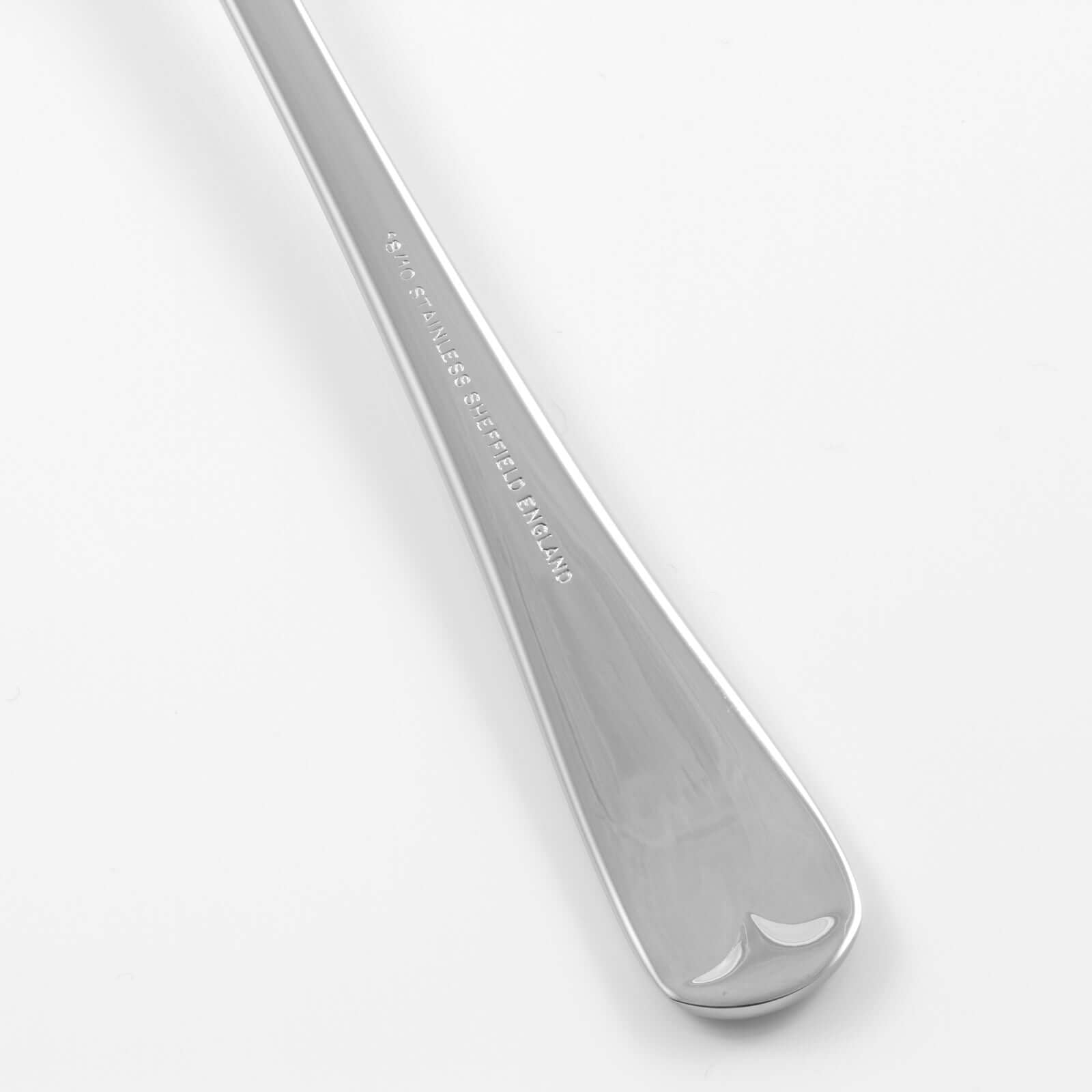 従来のものと比較して欠けなどが発生しずらい、高級ステンレスと呼ばれるシェフィールド産の18/10ステンレスのみを使用しています。また、裏側にはSheffield,Englandと書かれています。これはシェフィールドで生産された証です。